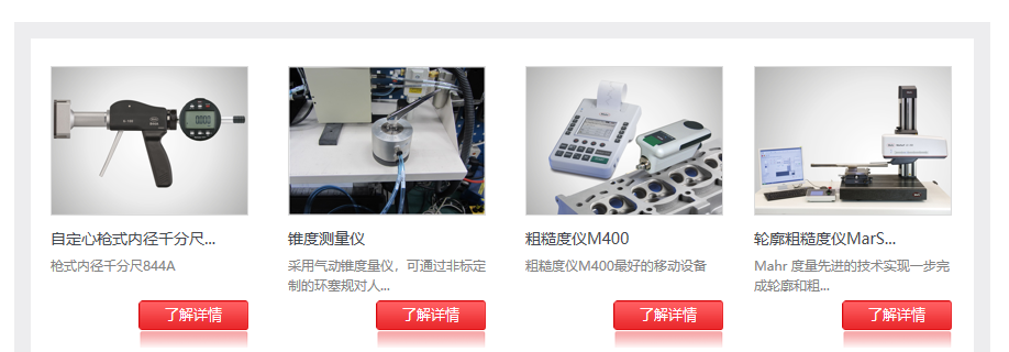 產(chǎn)品中心界面有清晰的產(chǎn)品類目:通用量具,在線測量,精密設(shè)備,計量設(shè)備,理化試驗等,每款產(chǎn)品